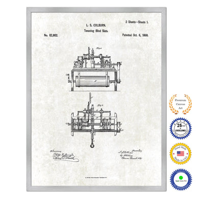 1868 Tenoning Blind Slats Old Patent Art Print on Canvas Custom Framed Vintage Home Decor Wall Decoration Great for Gifts