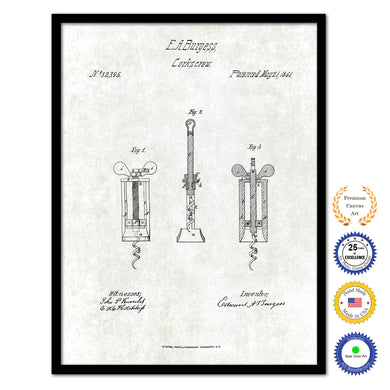 1862 Wine Corkscrew Old Patent Art Print on Canvas Custom Framed Vintage Home Decor Wall Decoration Great for Gifts